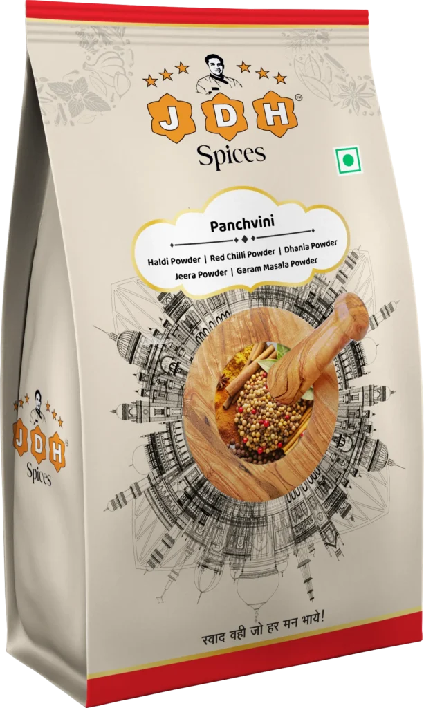 A versatile blend of India’s five most-loved spices in one thoughtful pack. Panchvini brings together golden turmeric powder, fiery red chilli powder, aromatic coriander powder, earthy cumin powder and our signature garam masala powder – each crafted to deliver unmatched flavour and purity. From everyday cooking to festive feasts, Panchvini is your all-in-one answer to authentic Indian taste.